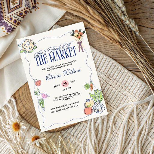 Fresh Off the Market Bridal Shower Whimsical Drawn Invitation