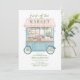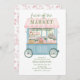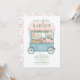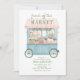 Fresh Off The Market Farmer's Floral Bridal Shower Invitation with a pretty pink and blue Farmer's Market cart full of pink roses and other lovely fresh market goods!