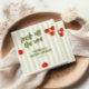 Get ready to celebrate the bride-to-be with our artsy "Fresh Off The Vine" Bridal Shower napkin design, where rustic elegance dances with garden charm. This casually delightful sign captures the essence of a joyful gathering, featuring a vibrant tomato theme splashed with artistic flair, setting the scene for an unforgettable celebration. Adorned with whimsical illustrations of ripe tomatoes flaunting their lush red hues and delicate green leaves, adding a playful and fresh touch, reflecting the abundance and warmth of a garden in full bloom.