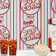 Popcorn anyone? Immerse yourself in the nostalgic charm of the silver screen with this delightful peel and stick wallpaper, designed to bring the magic of movies into your very own space. As you apply this easy-to-install wallpaper, you'll be greeted by a pattern of whimsical popcorn logos, each emblazoned with the words "Fresh Popcorn Sweet and Crunchy," reminiscent of the classic cinema snack that has delighted generations of moviegoers. The design is a playful homage to the golden age of film, with each logo popping against a white backdrop with red vertical stripes, evoking the iconic popcorn bags that are a staple at every movie theatre.