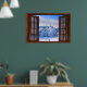 Window with a View Faux Poster Print - Fresh Snowfall Winter Scene. Enhance the decor of any room with this picturesque poster. The artwork creates the illusion of having an open bay window with tinted glass to look out of. The freshly snow covered ground and trees makes you feel as though you are looking out at a picturesque winter scene. The original artwork is 36"W x 24"H which is the average poster size and was created at high resolution (300 dpi) so re-sizing it is not a problem. The background scene of this poster is a lot wider so you can slide it left or right to feature a different view by clicking on "edit design". See other beautiful scenes in my store. Feel free to contact me if you have any questions.