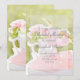Adorable and editable wedding design with a beautiful fresh spring flower bouquet with cherryblossoms in the green background.