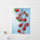 A dynamic scene of ripe berries in mid-air, falling through a stream of light blue water. The berries are captured in various stages of descent, creating a visually striking composition. The vibrant red hues of the berries contrast with the light blue background and the movement of the water, their suspended movement is frozen in the photograph.