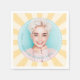 Trendy student graduation photo napkins featuring your photo with a round, white polka dot border overlay on a light yellow (or custom colour) sunburst background. Customisable year, name or school name. You can change background, fonts and font colours, move and resize elements with the design tool.