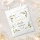 Thank your family and generous guests at your baby shower by offering them a thank you favour with this fresh and pretty baby shower favour bag. These favour bags for baby shower feature a design with a lovely bouquet of elegant pastel yellow roses with green botanical leave in each corner. Personalise these yellow floral favour bags with your first name, the date of your event, a thank you, and the name of your event such as a baby shower, baby sprinkle, or a gender reveal. So fresh and pretty for spring and summer.