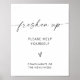 Enhance the charm of your minimalist wedding with our elegantly designed freshen up wedding bathroom basket sign. Easily modify the colours to match your theme by clicking the blue 'Edit using design tool' button in the personalisation section.