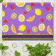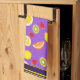 Designed to bring a burst of freshness to your kitchen adventures, let’s discover this beautiful customisable towel! Dark and light purple background, with yellow traits adorned by a colourful assortment of summer fruits—juicy strawberries, zesty lemons, tangy kiwis, refreshing grapefruits, and vibrant oranges—you'll feel the essence of sunny days with every wear.