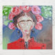 Frida Kahlo Mexico Original Red Floral Pink Woman Faceless sparkling wine Label. Original Gift for her.