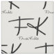 This artistic fabric design features a unique and sophisticated repeating pattern based on Frida Kahlo's iconic initials and signature. The stylised "FK" monogram is prominently displayed in a bold, calligraphic style, with her authentic full signature elegantly placed beneath each initial. The minimalist black design stands out beautifully against a clean, light background, creating a chic and artistic tribute to her enduring legacy. This pattern offers a subtle yet powerful way to express admiration for the legendary artist. © 2025 Frida Kahlo Corporation. All Rights Reserved.