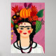 Beautifully designed Frida Kahlo poster with floral elements on a pink background
