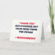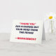 Remember when you cleaned out your food from the fridge? Management wants to thank you with this greeting card as a firm incentive to be careful about your homemade lunches, which do leak a little.