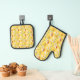 This vibrant fried eggs and bell peppers oven mitt and potholder set, featuring a bold design against a yellow background is perfect for food enthusiasts and those who love a splash of colour, with colourful fried eggs and bell peppers, adding a fun, culinary touch to your cooking space. Made from heat-resistant materials, the mitt and potholder provide safety and comfort while handling hot dishes. Whether you're frying up breakfast or baking something delicious, this set is a must-have for any kitchen.