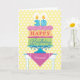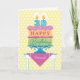 A birthday card for your 30 year old friend. "Happy Birthday" is on each layer of the cake with pink decorative icing separating them. A subtle background of yellow and blue anchors the design. Bright colours and a bold graphic styling give this birthday wish a festive feel. You can also change "friend" to personalise for any one.