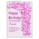 A flurry of pink butterflies fills this birthday card for a friend with joy. A crowd of butterflies soaring upwards to tell your friend how wonderful she is. She is sure to love the sentiment in this heartfelt message.