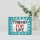 "Friend For Life" is a cute inspirational or motivational quote with a white accent shape surrounded by white textured whimsical dots.