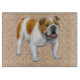 Original fine art design of a cute and friendly English Bulldog by artist Carolyn McFann of Two Purring Cats Studio printed on a quality cutting board for dog lovers.