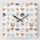 Friendly Faces | Cute Animal Portraits Square Wall Clock