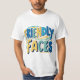 The "Friendly Faces" t-shirt design features a cheerful, colourful pattern of smiling faces arranged in a fun, repeating motif. Each face is distinct and expressive, radiating positivity and warmth. The playful design captures the essence of friendliness and approachability, making it a great choice for those who enjoy spreading joy and good vibes.