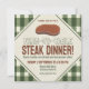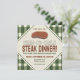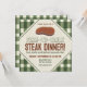 Sink your teeth into this friendly, farm-to-table, steak dinner invite with grill marked, steak illustration at top. Beige with green border square over a green and beige plaid background. Perfect for an engagement dinner party, bachelor or bachelorette party, wedding rehearsal dinner, special birthday celebration, and many more occasions! Templates included, but if you need help with it, send me a chat message to help.