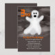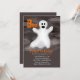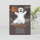 A children's Halloween party invitation featuring a "not too scary" friendly ghost.