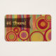 This business card has been left intentionally blank on the back. It features a sophisticated palette of reds, golds, greens, blues, and orange... even some pops of deep pink. But that sophistication is a perfect balance to the whimsical, quirky textured, nested circles and stripes of uneven widths. A partially-opaque black badge peeks in from the left like a little flag over which the words "Hi There!" have been rendered in an equally friendly font. The colourful design can be moved around, rotated or resized if you'd like to have a bit of control over the ultimate look of these cards. Likewise, change your font and text colours if you wish. /// If you'd like to use this design as an actual business card, rather than leaving it blank so for writing happy, friendly notes on the back for friends and loved ones (as well as strangers!) please do. Just add your details on the back instead of leaving it blank and voila: a happy little business card for you!