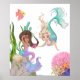 A Beautiful Poster Of Mermaids Under The Sea Together