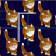 Original fine art design of a cute ginger or orange tabby cat against a midnight blue background by animal artist and designer Carolyn McFann of Two Purring Cats Studio printed on high quality cotton fabric for kitty fans.