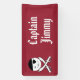 Friendly Smiling Pirate with Crossed Swords on Red Banner