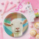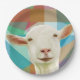 Friendly White Goat Colourful Geometric Background Paper Plate