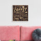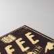 © Pela Studio / Wild Apple. A vintage brown and gold sign featuring a quote about coffee. The sign says "A cup of coffee shared with friends is happiness tasted and time well spent."
