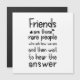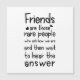 Friendship quote typography in black and white "Friends are those rare people who ask how we are and then wait to hear the answer"