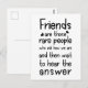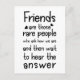 Friendship quote typography in black and white "Friends are those rare people who ask how we are and then wait to hear the answer"
