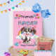 A cute puppy wearing a crown of flowers and two pink bows is ready to greet her classmates and guests as a "Friends Fur-Ever" pun. The sweet dog is on a pink background with colourful hearts, and a rainbow of clouds behind it. This card is perfect for the classroom, and even teachers can spread a little love to their students. Grandparents will cherish giving this card to their grandchildren. Share it with your family, friends, Valentine's Day party at home, neighbourhood, in shelters, church, or with anyone your kid can become friends with.