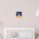 Cartoon wall art for kids featuring a little boy standing on planet Mars together with cute, friendly aliens. In the background is a little alien spaceship and you can see the the earth and moon. Illustration by MheaDesign. For any inquiries regarding the image or printed design, please contact me through my Facebook page: www.facebook.com/MheaDesign