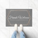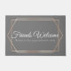 Funny and fancy doormat that will be sure to have everyone talking. "Friends Welcome" in modern white script font, with a more subtle grey "relatives by appointment only" text underneath. Both are framed in a modern rose gold geometric frame on grey background.