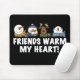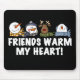 Three snowmen and a reindeer adorn these cute holiday stickers, magnets, greeting cards, T-shirts, and other items and text reads "Friends Warm My Heart!". These holiday T-shirts and other items are perfect for the entire winter, not just for Christmas!