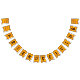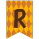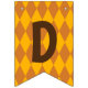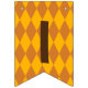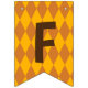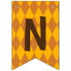 Banner with a fall-coloured argyle print (technically a harlequin diamond pattern) that says Friendsgiving. Brown, yellow, gold.