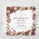 Rustic autumn floral design includes burgundy red, mauve pink and white flowers. The Friendsgiving Dinner details are in the centre in a white square.