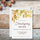 This stylish invitation is decorated with watercolor autumn leaves in fall colours and dark brown text.