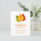 Thanksgiving / Friendsgiving casual potluck dinner invitation on budget paper. Cheerful fall leaves and festive text in autumn colours. Click Customise to change the text or background colour.