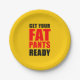 Friendsgiving Get Your Fat Pants Ready party plates. Great for a Friendsgiving feast. Get your fat pants ready because it's time to stuff your face!
