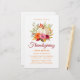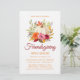 Friendsgiving / Thanksgiving dinner open-house invitation on budget paper. Cheerful fall flowers and white pumpkin in watercolor boho motif with autumn leaves and script text in festive colours. Click Customise to change the text or background colour.
