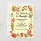 A potluck dinner invitation for friends' Thanksgiving. Or a Friendsgiving celebration. Light yellow background on the front and a decorative burnt red background on the back. This holiday feast can be any time of the year, usually the weekend before the holiday. Many enjoy Thanksgiving Day with friends. Personalise this template with your information. Customise it further to make more changes.