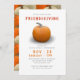 Invite your friendsgiving guests in style with this simple but elegant flat card invitation. This design features an orange pumpkin with coloured text in red, orange and grey