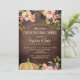 Rustic Pink Flowers and pumpkin in combination with warm, elegant wood background. Beautiful, pink and gold adorable Friendsgiving - Thanksgiving dinner invitation.