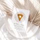 This unique invitation showcases a watercolor slice of orange pumpkin pie with a dollop of whipped cream on a vintage watercolor plate. The back of the card features a watercolor light green gingham. The typography is a green script title with vintage inspired party details in the font below.
