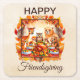 Friendsgiving Woodland Animals Autumn Leaves Square Paper Coaster