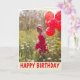 Cover: Lady with red balloons in the countryside. Reads: Happy Birthday. Inside reads: Wishing you a beautiful day.