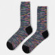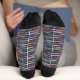 These socks are perfect for coordinating with your friendship bracelets, that's because they feature a pattern of friendship bracelet graphics in bright colours set against a navy blue background.