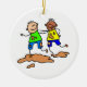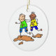 Cute cartoon whimsical illustration of two happy little boys from different ethnic backgrounds playing together in the mud. Easily customise and choose your own background colour or add text. Image available on various gifts and products.
